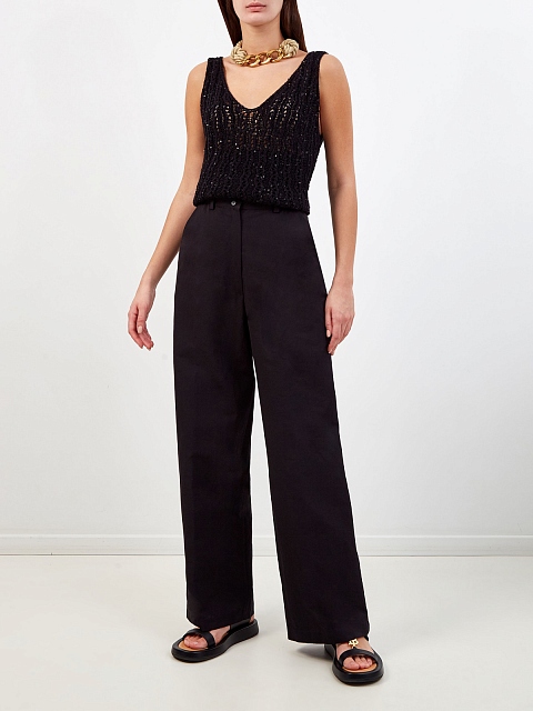 Топ из хлопковой пряжи ручной вязки с пайетками