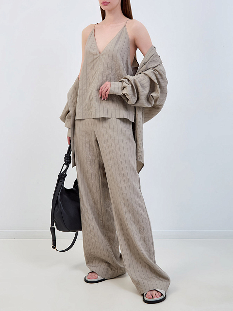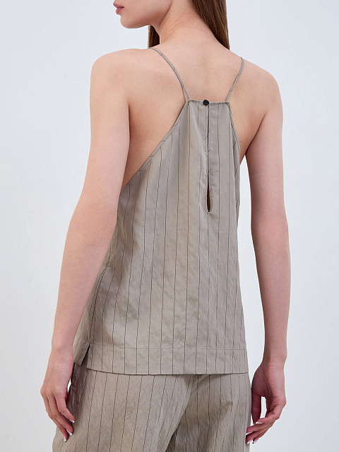 Топ из легкого поплина в полоску с V-образным вырезом