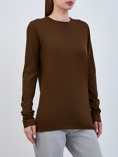 Хлопковый лонгслив удлиненного кроя из гладкого джерси