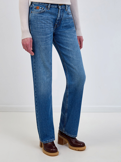 Джинсы из окрашенного вручную денима с кожаным патчем