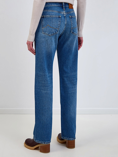 Женские джинсы из окрашенного вручную денима с кожаным патчем JACOB_COHEN купить за 47 840 руб.