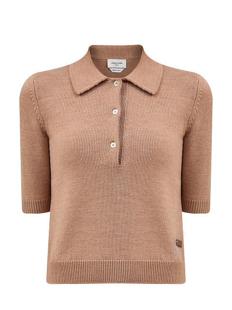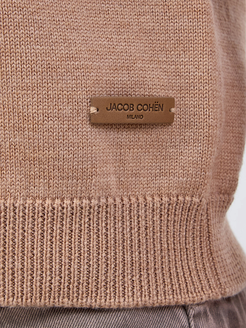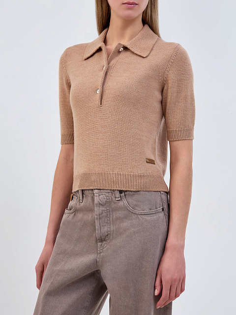 Женский шерстяной джемпер-поло с деталью из кожи JACOB_COHEN купить за 47 280 руб.