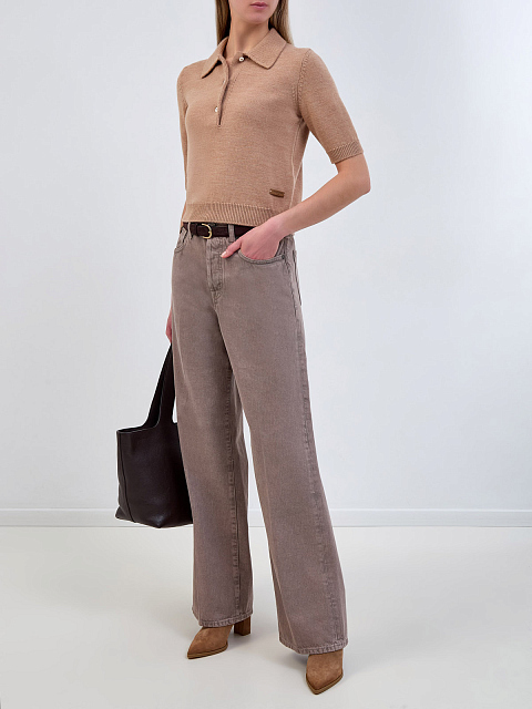 Шерстяной джемпер-поло с деталью из кожи