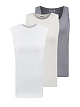 Комплект из трех базовых топов в белом, молочном и сером цветах от Jil Sander. Каждое изделие выполнено из эластичного хлопка джерси, приталенный крой, полностью натуральный состав и разная ширина бретелей делают комплект универсальным элементом для создания повседневных образов. Минималистичный дизайн дополнен вышитой монограммой JS на сером топе.