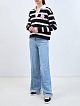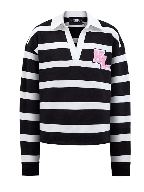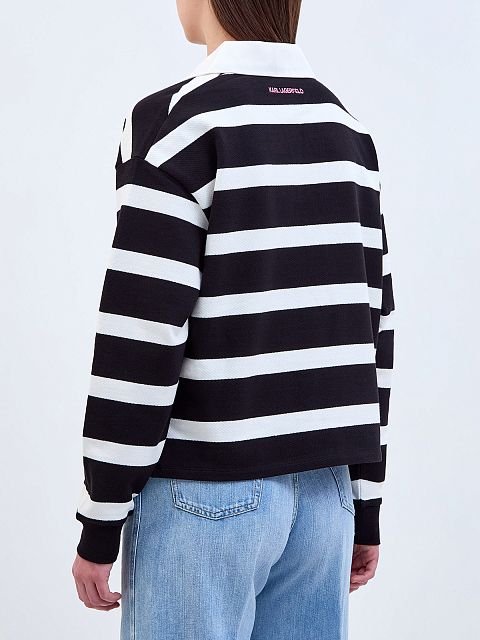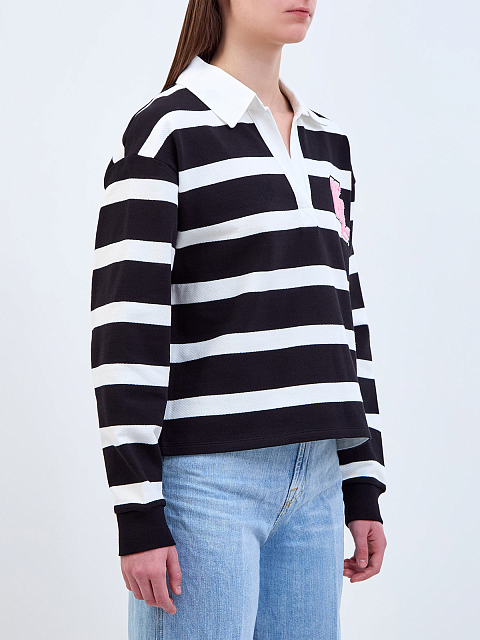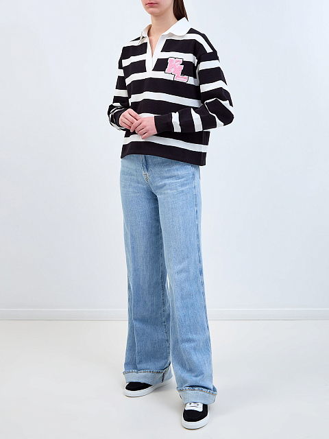 Свитшот из хлопка в полоску с отложным воротом и патчем-букле