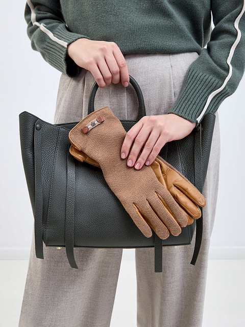 Перчатки ручной работы из кожи и шерсти с деталью Swarovski