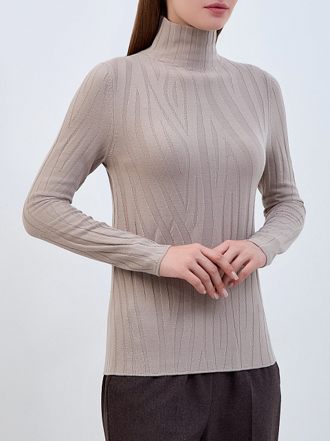 Водолазка из тонкой шерстяной пряжи с рельефным узором