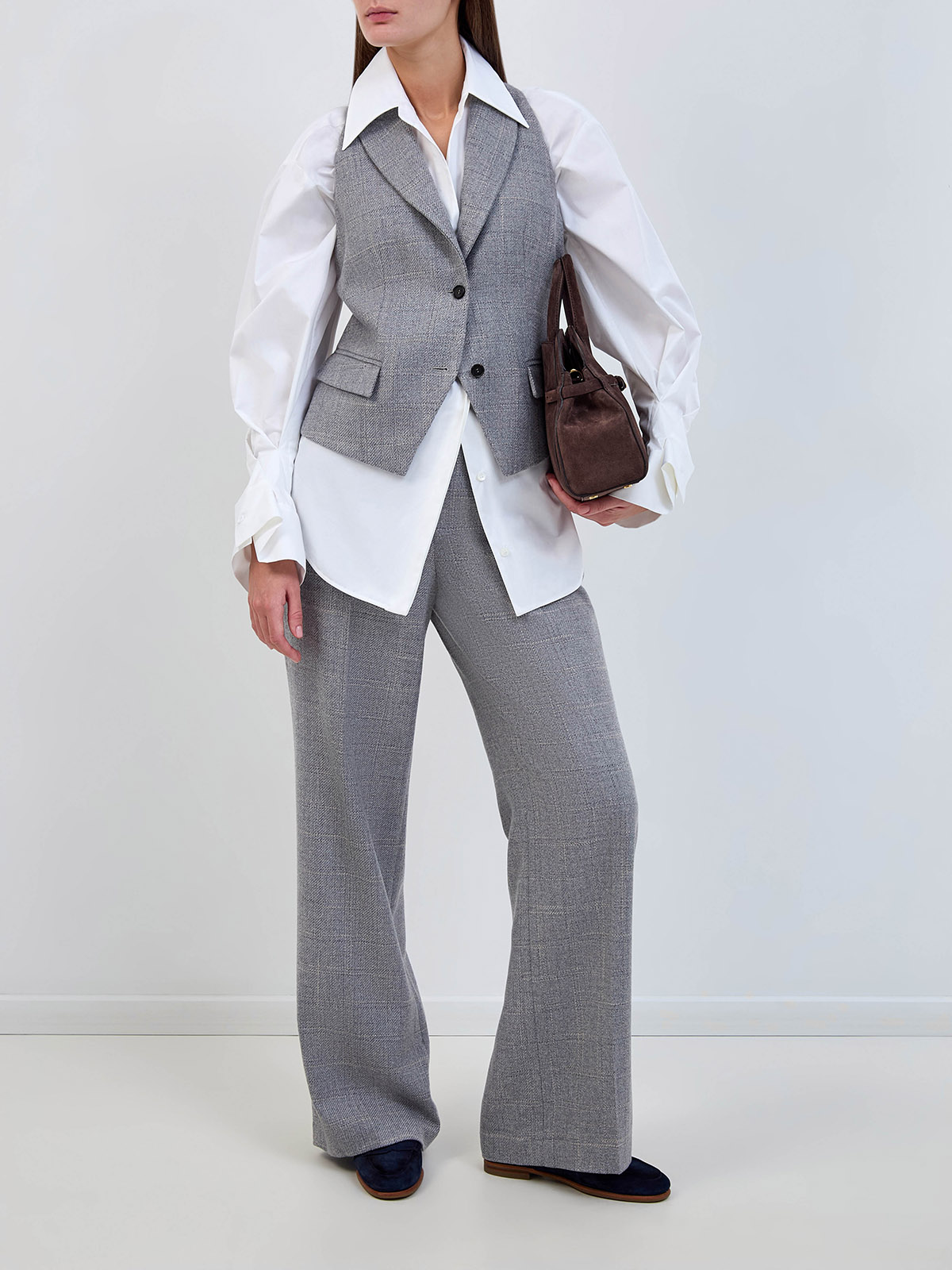Женский костюмный жилет из шерсти в клетку с атласной спинкой LORENA_ANTONIAZZI купить за 71 120 руб.