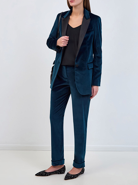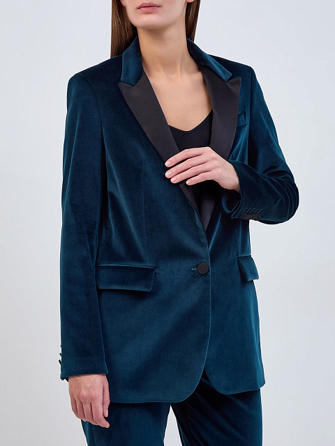 Однобортный жакет из велюра с лацканами в стиле смокинга