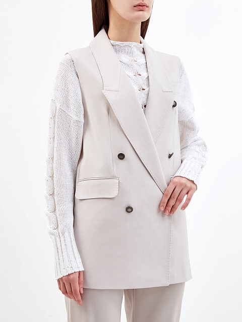 Удлиненный двубортный жилет из тонкой шерстяной ткани