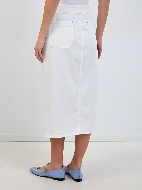 Юбка-миди из хлопкового денима с высоким разрезом