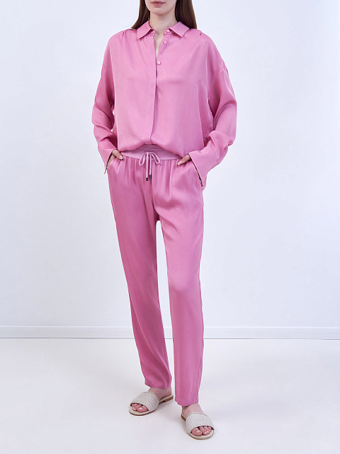 Зауженные брюки из шелка с эластичным поясом на кулиске