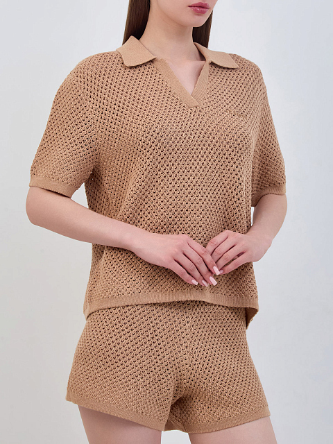 Вязаное поло Pixie с V-образным вырезом и вышивкой