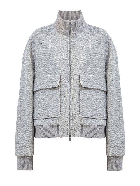 Бомбер из шерсти букле и альпаки с шевронным узором в тон