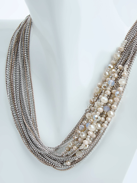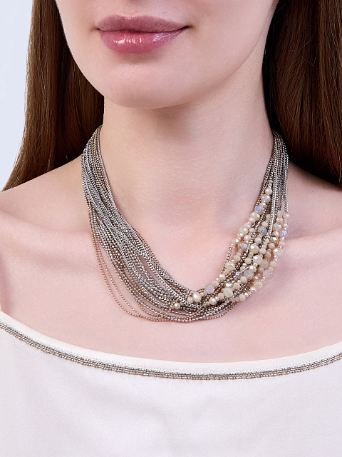 Ожерелье с эффектом многослойности из цепочек и кристаллов