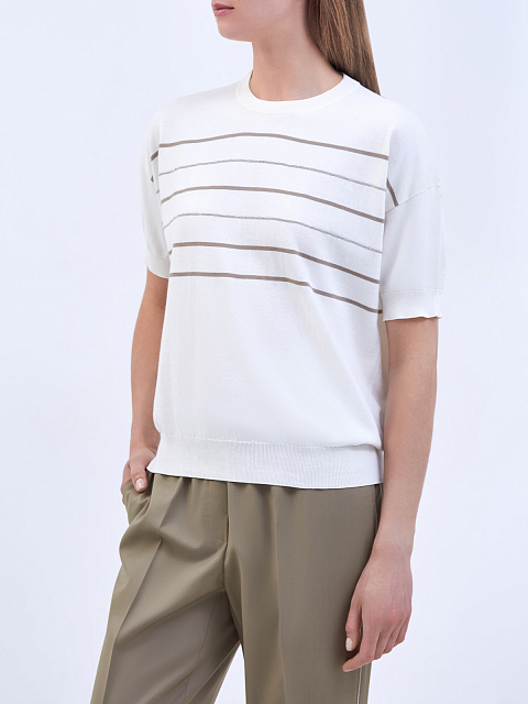 Женский хлопковый джемпер в полоску с деталью punto luce PESERICO купить за 61 800 руб.