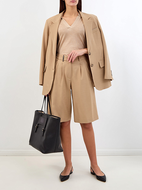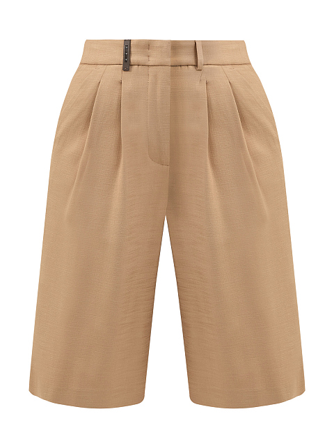 Свободные бермуды с заложенными складками и кожаной шлевкой