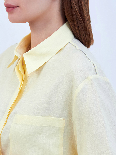 Рубашка из тонкой льняной ткани с накладными карманами