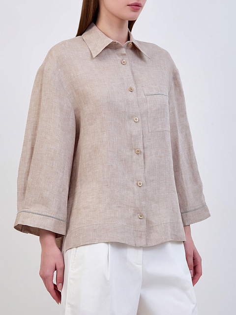 Тонкая льняная рубашка с окантовкой из цепочек Punto Luce