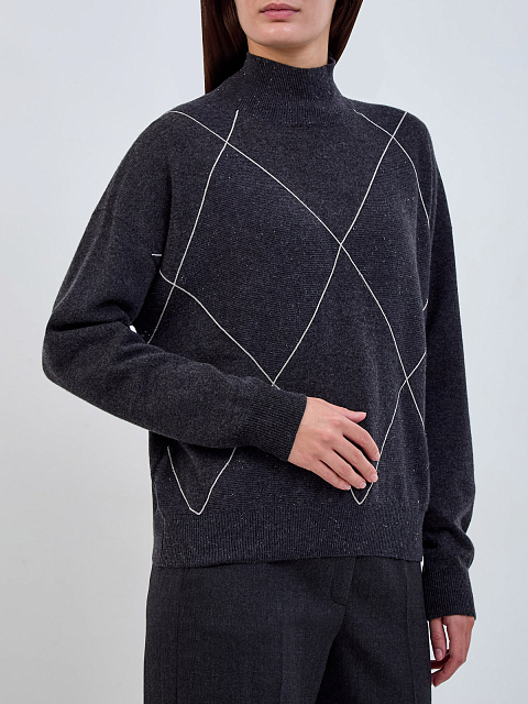 Женский джемпер из шерсти, шелка и кашемира с ювелирными цепочками PESERICO купить за 55 930 руб.