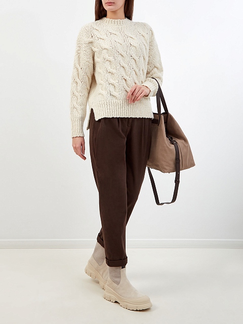 Джемпер из пряжи узорной вязки на основе альпаки и шерсти