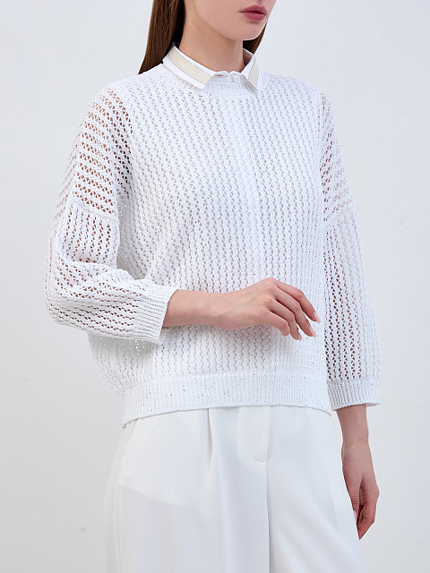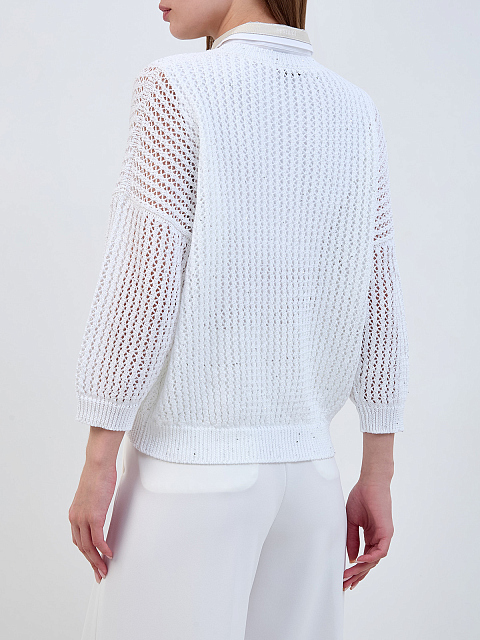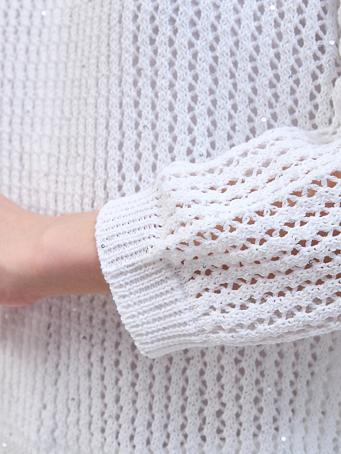 Джемпер из хлопковой пряжи с рукавами ¾ и пайетками