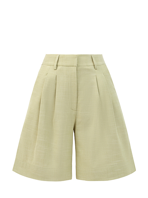 Расклешенные шорты на высокой посадке с фактурными защипами