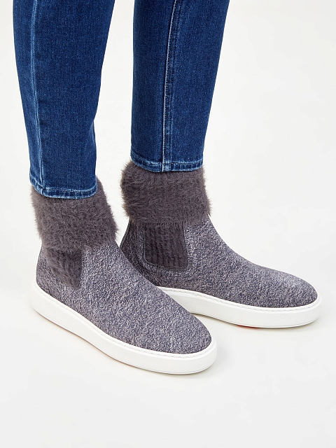 Женские ботинки-челси из меланжевой замши и мягкого трикотажа SANTONI купить за 35 800 руб.
