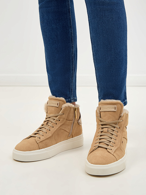 Женские замшевые кеды ручной работы с меховой отделкой SANTONI купить за 60 970 руб.