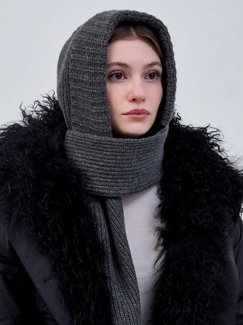 Вязаный капор из шерсти и кашемира с шарфом