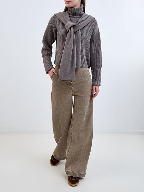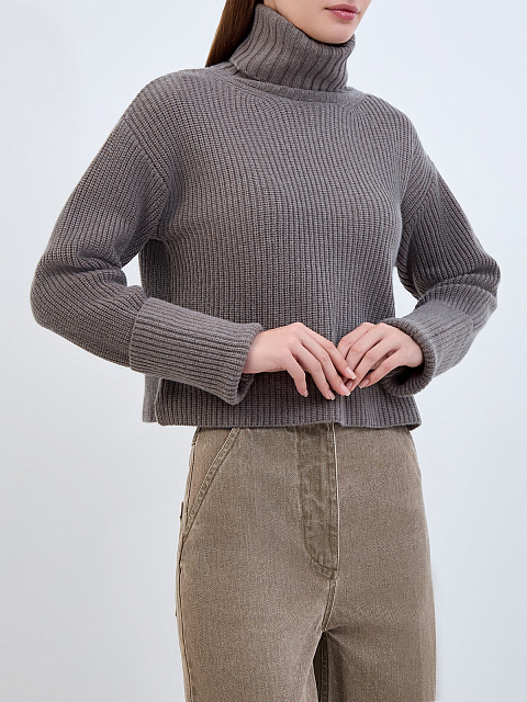 Свитер английской вязки из шерсти и кашемира с высоким воротом