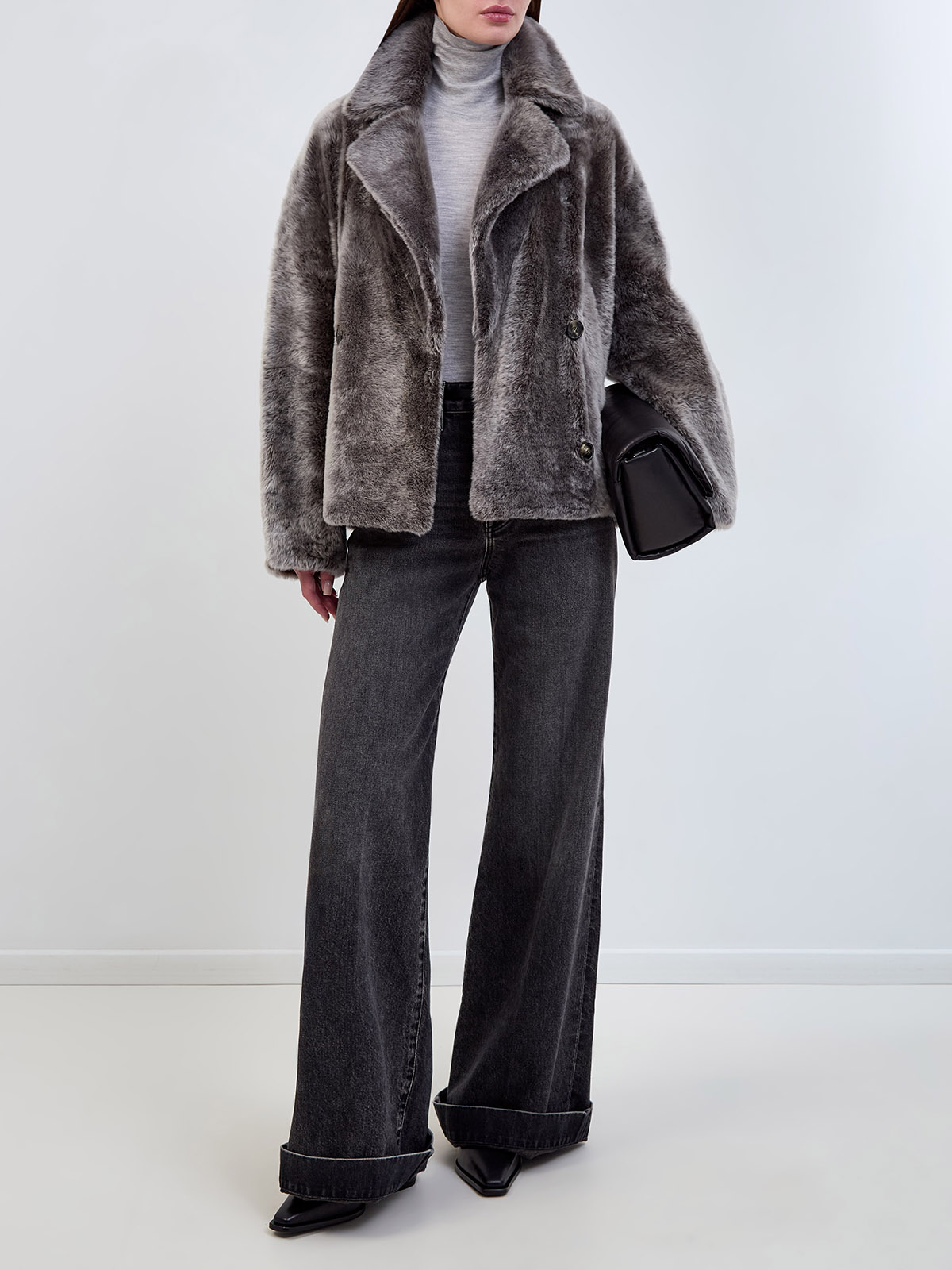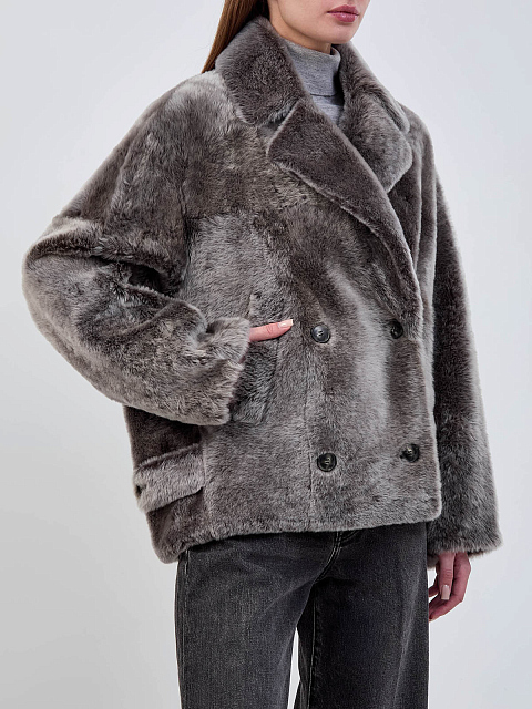 Короткая шуба из меха ягненка с двубортной застежкой