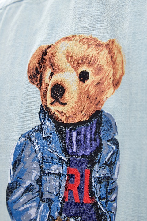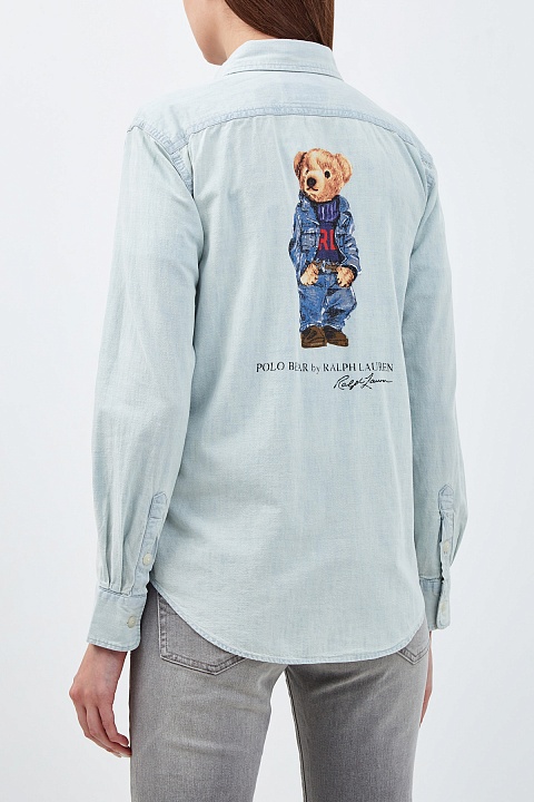 Рубашка из тонкого денима с принтом медведя Поло на спинке