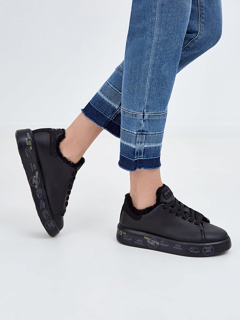 Однотонные кеды Belle 5074 с отделкой из меха