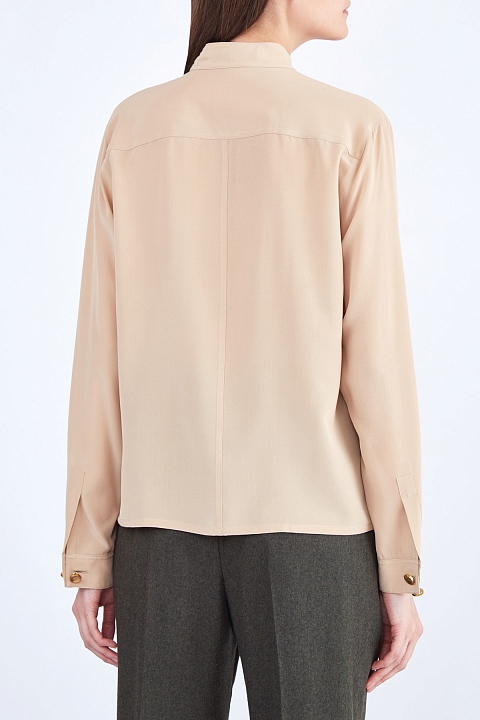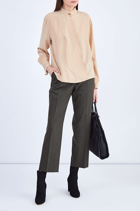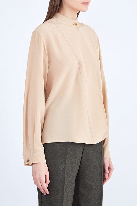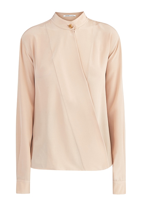 Блузка из шелка с кроем на запах и воротом-стойкой на пуговице
