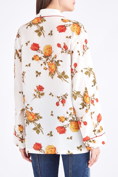 Блуза в пижамном стиле из шелка с цветочным принтом