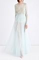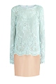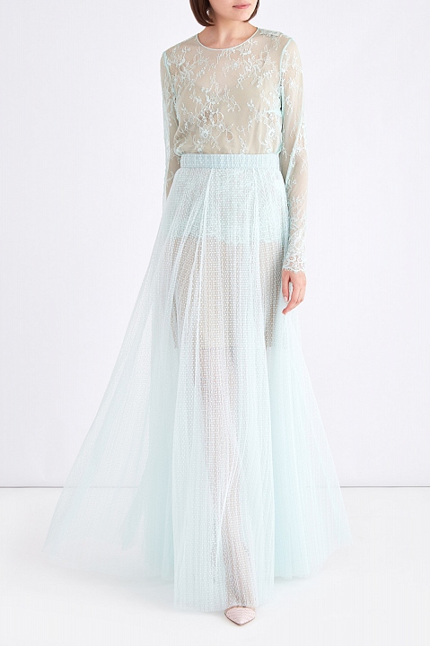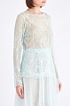 Эффектная женская блуза удлиненного силуэта из весенне-летней коллекции A La Russe выполнена из французского кружева с цветочным мотивом в нежном небесном оттенке. Модель прямого кроя дополнена внутренним топом с V- образным вырезом горловины и декольтированной спинкой из струящейся ткани телесного тона с легким сатиновым блеском. Ажурные кромки рукавов и нижнего края завершают нежный образ в романтическом стиле. Сделано в России.
