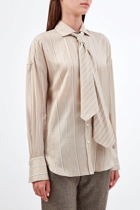 Шелковая блуза-oversize со съемной лентой на вороте