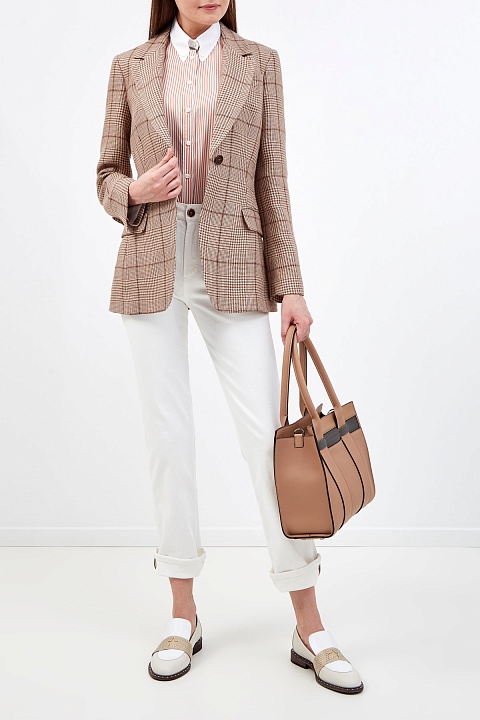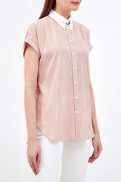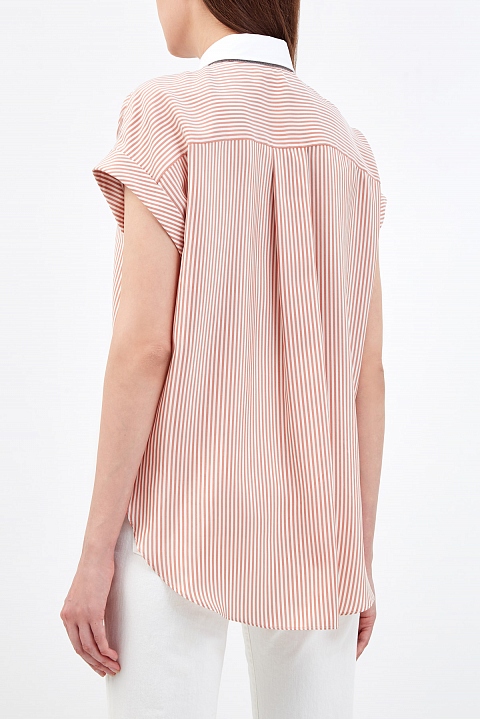 Шелковая блуза в полоску с контрастным воротником