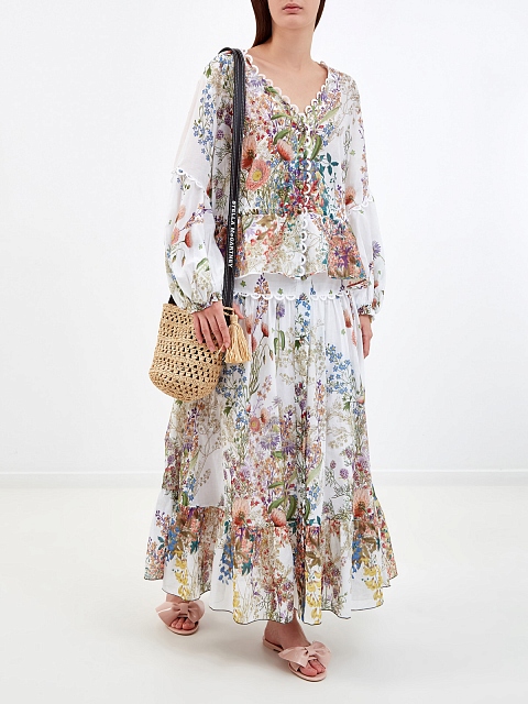 Блуза Carolyn из тонкого хлопка с оборками и принтом