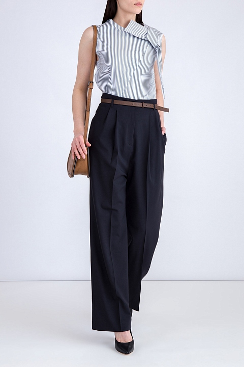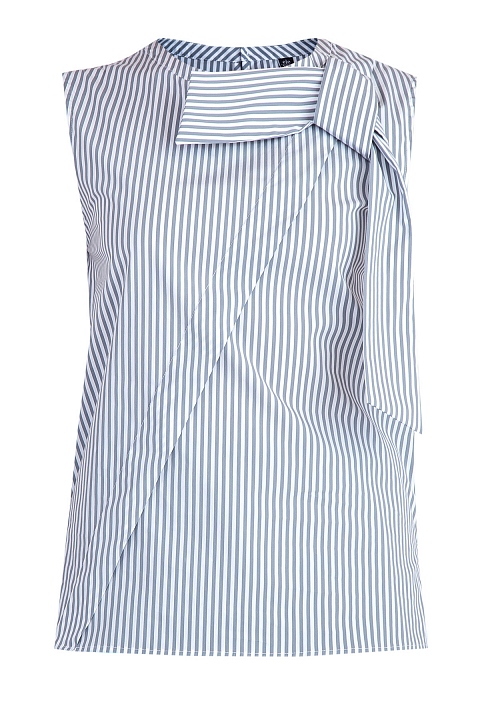 Блузка с открытыми проймами и объемным бантом на передней панели