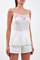 Воздушный топ от Ermanno Ermanno Scervino выполнен из легкого шелка в актуальном белоснежном оттенке. Полупрозрачный материал повторяет контуры тела и идеально подходит для романтичных летних аутфитов. Тонкие регулируемые бретели и кружевная отделка кромок придают образу изящный акцент. Детали: приталенный силуэт, вытачки для посадки точно по фигуре.