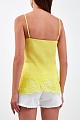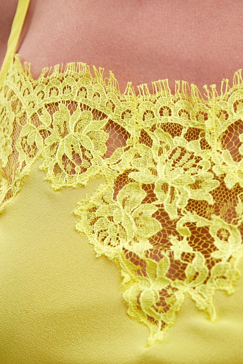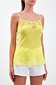 Воздушный топ от Ermanno Ermanno Scervino выполнен из легкого шелка в ярком желтом цвете. Полупрозрачный материал повторяет контуры тела и идеально подходит для романтичных летних аутфитов. Тонкие регулируемые бретели и кружевная отделка кромок придают образу изящный акцент. Детали: приталенный силуэт, вытачки для посадки точно по фигуре.