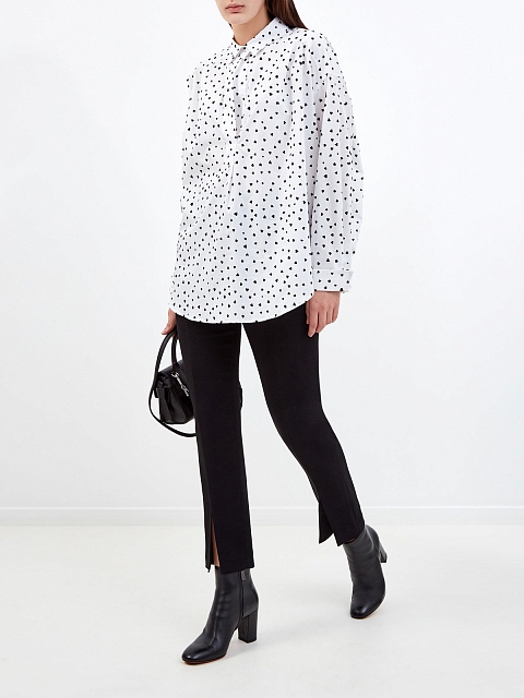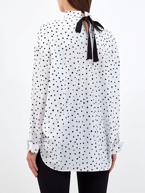 Хлопковая блуза с принтом и лентами на вороте