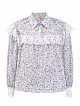 Легкая блуза от Ermanno Firenze создана в белом цвете и дополнена цветочным принтом в пастельных тонах. Сочетание гладкого хлопкового поплина и кружевной отделки делает модель идеальной для летних аутфитов. Объемные оборки придают изделию романтичный акцент. Детали: застежка на пуговицы, отложной воротник.