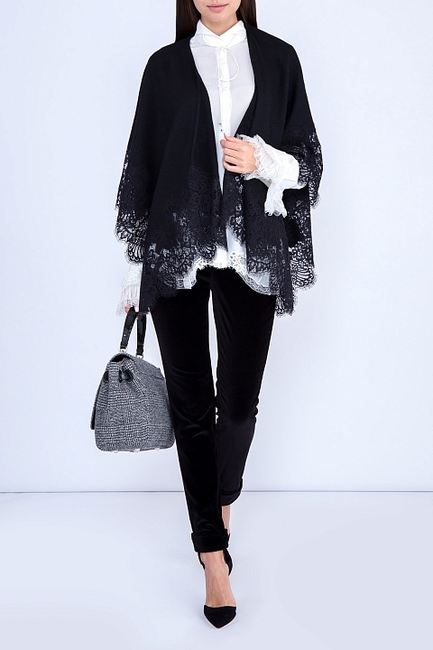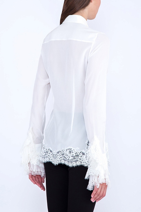 Шелковая блуза с кружевными вставками и воротом Windsor