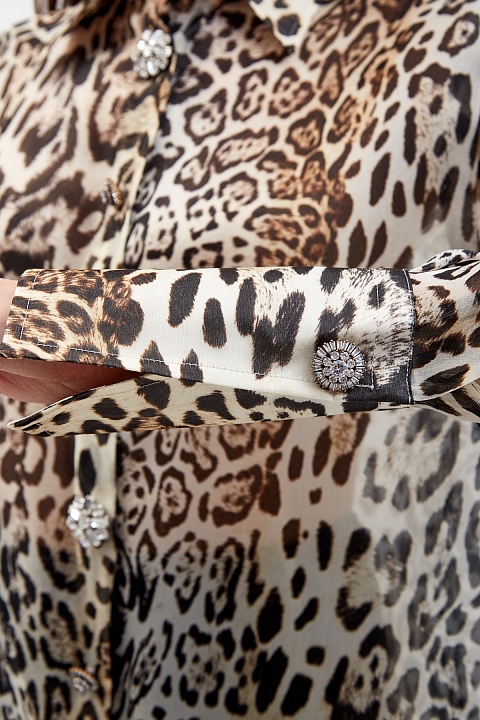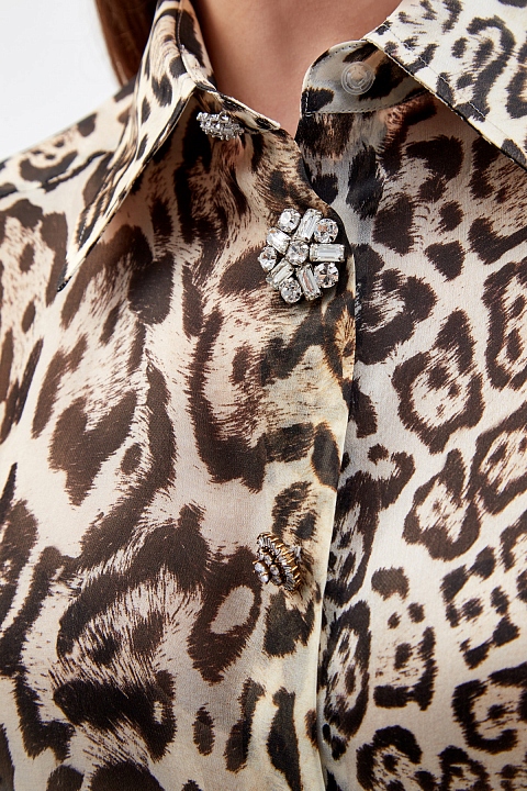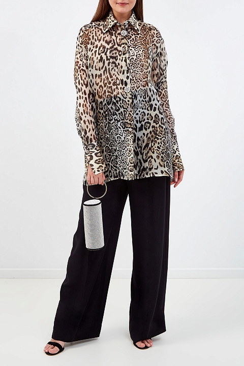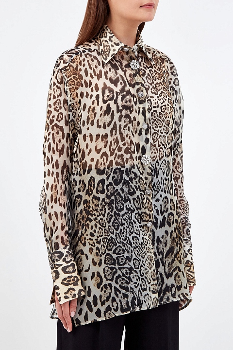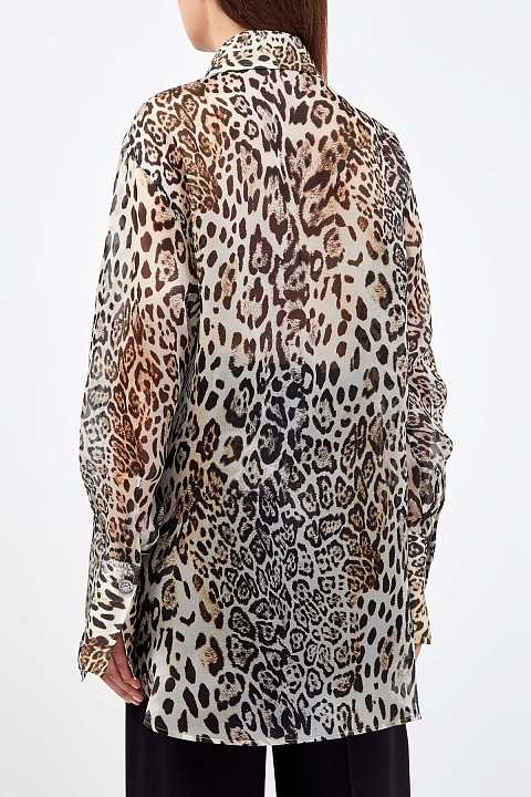 Блуза-oversize из тонкой шелковой органзы с анималистичным принтом