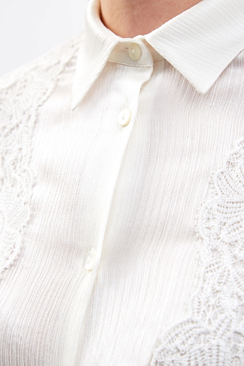 Струящаяся блуза из легкого шифона с объемными рукавами и кружевной отделкой