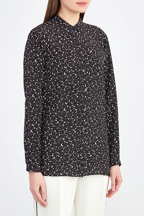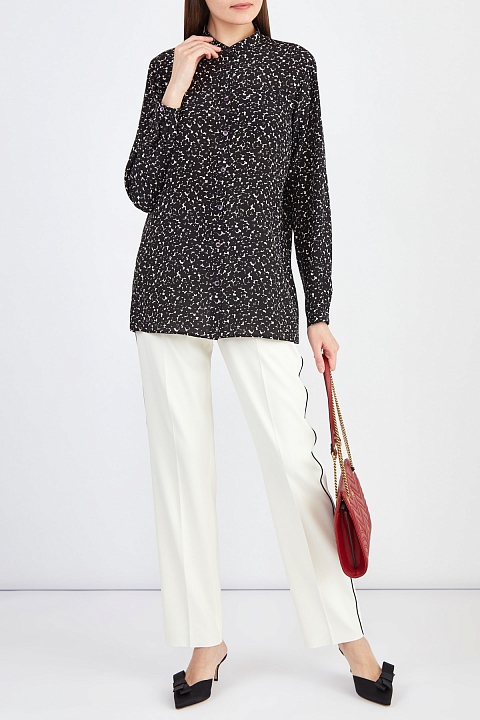 Блуза из шелка с цветочным принтом в монохромной гамме