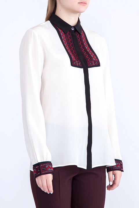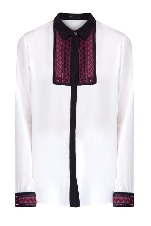 Рубашка из шелка со вставками с фактурной ремесленной вышивкой